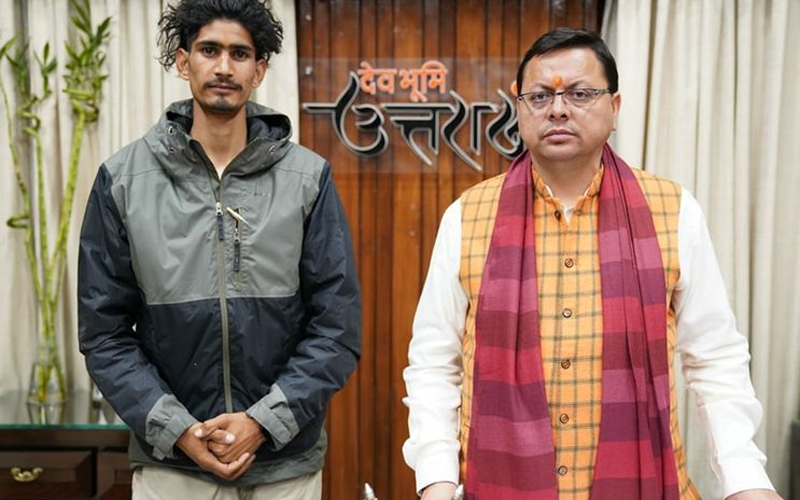 मुख्यमंत्री धामी से आज 22 वर्षीय टिहरी निवासी पर्वतारोही रोहित भट्ट ने भेंट की