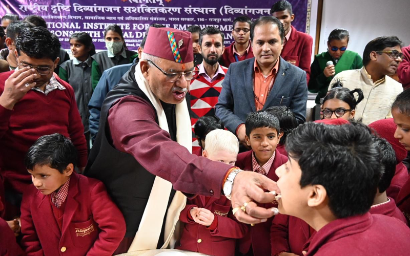 देहरादून – प्रदेश के कृषि मंत्री गणेश जोशी ने अपना जन्मदिवस सेवा दिवस के रूप में मनाया। मंत्री जोशी ने जन्मदिवस सर्वप्रथम राजपुर रोड स्थित राष्ट्रीय दृष्टि दिव्यांगजन सशक्तिकरण संस्थान (एन.आई.वी.एच) में दिव्यांग बच्चों के साथ कैक काटकर अपना जन्म दिवस मनाया। मंत्री जोशी ने कहा कि दिव्यांग बच्चों से मिलकर और इनके साथ अपनी खुशी बाटने से आत्मीय शांति और संतोष का अनुभव होता है। कार्यक्रम के दौरान मंत्री जोशी बच्चो को संबोधित करते समय भावुक हो गए। मंत्री ने कहा कि उनका बचपन बहुत गरीबी में बीता और वह गरीबों के दर्द को बखूबी समझते हैं। मंत्री ने कहा कि वह अपना एवं अपने परिवारजनों की खुशियों को समाज के गरीब और कमजोर वर्ग के लोगों के बीच मनाते आए है। मंत्री जोशी ने कहा कि उनका हमेशा प्रयास रहेगा कि वह गरीबों का हरसंभव सहयोग करते रहें। इससे पहले मंत्री गणेश जोशी ने कैंप कार्यालय में एचडीएफसी बैंक के सहयोग से स्वयं सहायता समूहों की 10 महिलाओं को करीब 20 लाख रूपये के चैक वितरित किये। मंत्री जोशी ने कहा प्रदेश सरकार महिलाओं के उत्थान एवं उनकी आजीविका को बढ़ाने और महिलाओं को सशक्त करने की दिशा निरंतर प्रयासरत है। निश्चित ही इसके माध्यम से महिलाओं को  स्वरोजगार सृजित करने में मदद मिलेगी और जो हमारा लखपति दीदी का संकल्प है उसको मजबूती मिलेगी। इसके अलावा मंत्री जोशी ने कैंप कार्यालय में ही पंजाब नेशनल बैंक के द्वारा सीएसआर के अंतर्गत मसूरी विधानसभा के अंतर्गत 36 विद्यालयों में स्वेटर वितरण तथा चार विद्यालयों में 10 कंप्यूटर वितरित किया।