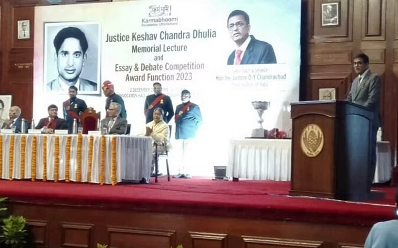 देहरादून – चीफ जस्टिस डीवाई चंद्रचूड़ आज शनिवार सुबह देहरादून पहुंचे। यहां एफआरआई में आयोजति कार्यक्रम में उन्होंने कहा कि जो देश हमारे साथ आजाद हुए थे वो इतने सौभाग्यशाली नहीं हैं जितना की भारत।मुख्य न्यायाधीश , न्यायमूर्ति डीवाई चंद्रचूड़, न्यायमूर्ति केशव चंद्र धूलिया मेमोरियल व्याख्यान और कर्मभूमि फाउंडेशन द्वारा आयोजित निबंध और वाद-विवाद प्रतियोगिता के पुरस्कार समारोह में बतौर मुख्य अतिथि पहुंचे। इस दौरान उन्होंने कहा कि भारत सौभाग्यशाली देश है और यहां के लोग भी। उन्होंने भारत के सौभाग्यशाली होने के पीछे कहा कि हमारी पवित्र पुस्तक संविधान है। यहां की भाषा यहां के लोग इसे सबसे अलग बनाते हैं।चीफ जस्टिस डीवाई चंद्रचूड़ सुबह जौलीग्रांट एयरपोर्ट पहुंचे थे। इस दौरान एयरपोर्ट पर सुरक्षा व्यवस्थाएं चाक-चौबंद रही।