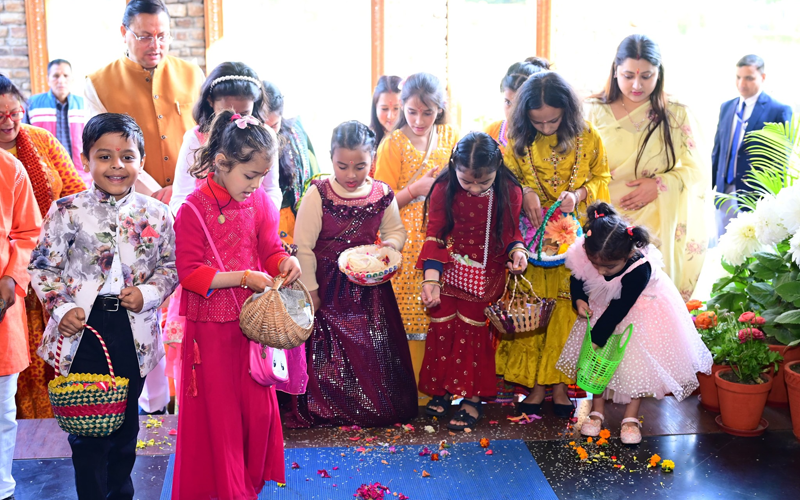 मुख्यमंत्री धामी ने सपरिवार मुख्यमंत्री आवास में उत्तराखण्ड के लोकपर्व “फूलदेई” को हर्षोल्लास से मनाया
