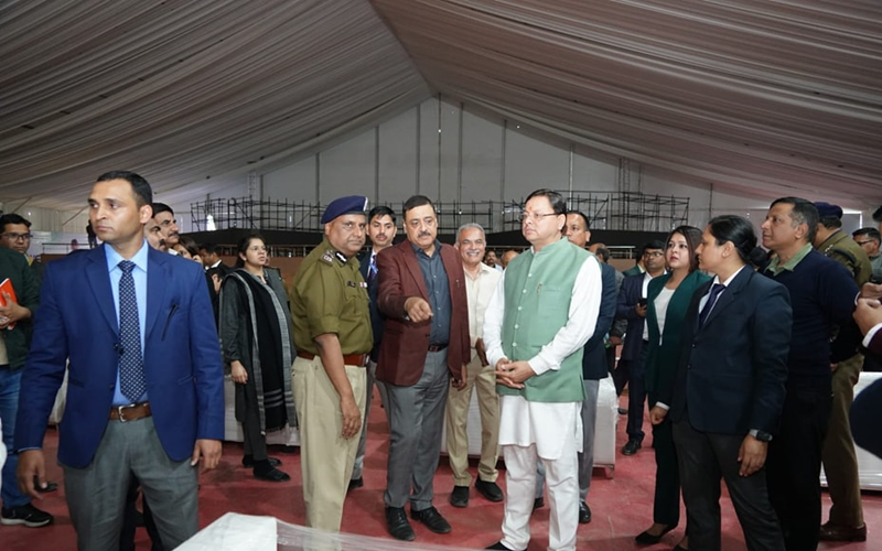 मुख्यमंत्री ने अधिकारियों को निर्देश दिए कि आयोजन की सभी व्यवस्थाओं को समय से पूरा करें। मुख्यमंत्री ने कहा कि सड़कों और सौन्दर्यीकरण के कार्य भी तेजी से हो रहे हैं। उन्होंने कहा कि यह राज्य के लिए बड़ी समिट है। अभी तक ढ़ाई लाख करोड़ रुपये से अधिक के करार हो चुके हैं।उन्होंने कहा कि निवेश करारों की ग्राउडिंग के लिए तेजी से कार्य किए जा रहे हैं।मुख्यमंत्री ने कहा कि राज्य में निवेश आने से स्थानीय लोगों के रोजगार में तेजी से वृद्धि होगी। राज्य में ऐसे करारों को शीर्ष प्राथमिकता दी जा रही है, जिनसे राज्य में रोजगार के अवसर बढ़े। निरीक्षण के दौरान अपर मुख्य सचिव राधा रतूड़ी, कार्यवाहक डीजीपी अभिनव कुमार, सचिव शैलेश बगोली, सचिव एवं गढ़वाल कमिश्नर विनय शंकर पाण्डेय, सचिव विनोद कुमार सुमन, एडीजी ए.पी अंशुमन उपस्थित रहे। इसके साथ ही जिलाधिकारी देहरादून सोनिका,महानिदेशक सूचना बंशीधर तिवारी, महानिदेशक उद्योग रोहित मीणा,एसएसपी देहरादून अजय कुमार एवं आयोजन के कार्यों में लगे अन्य अधिकारी भी उपस्थित रहे।