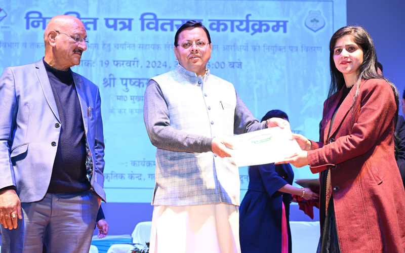 देहरादून। मुख्यमंत्री पुष्कर सिंह धामी ने आज देहरादून में आयोजित नियुक्ति पत्र वितरण कार्यक्रम में सम्मिलित होकर वन विभाग एवं तकनीकी शिक्षा विभाग हेतु चयनित सहायक लेखाकारों एवं वन आरक्षियों को नियुक्ति पत्र वितरित किए।
