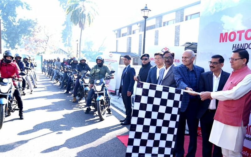 मुख्यमंत्री धामी ने राजस्व विभाग को उपलब्ध कराई गई 320 मोटर साइकिलों का फ्लैग ऑफ किया