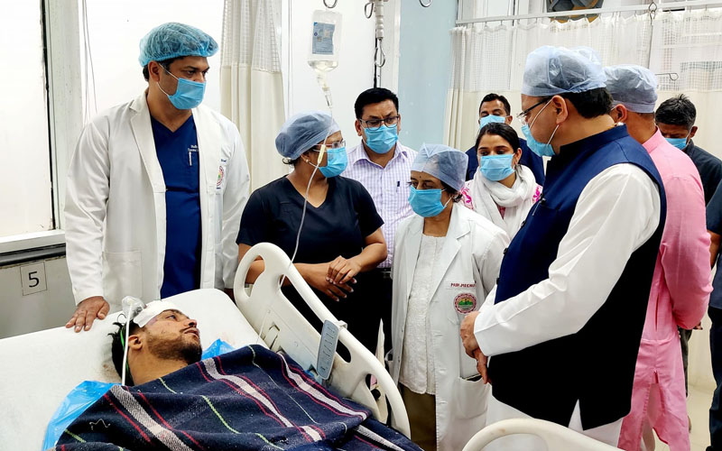 ऋषिकेश – मुख्यमंत्री पुष्कर सिंह धामी ने आज एम्स, ऋषिकेश में उपचार के लिए भर्ती रुद्रप्रयाग में हुई वाहन दुर्घटना के घायलों का हाल-चाल जाना। मुख्यमंत्री ने घायलों के उपचार के संबंध में एम्स के चिकित्सकों से भी जानकारी प्राप्त की तथा घायलों के बेहतर इलाज के निर्देश भी दिए। इस दौरान मुख्यमंत्री ने कहा कि रुद्रप्रयाग में हुई वाहन दुर्घटना के जांच के निर्देश दिए गए हैं। उन्होंने कहा कि प्रदेश में वाहन दुर्घटनाओं पर प्रभावी नियंत्रण के लिए भी अधिकारियों को निर्देश दिए गए हैं।