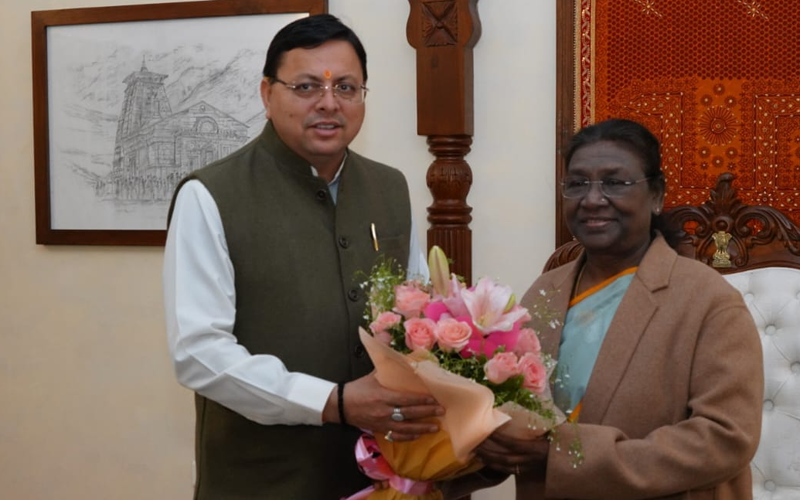 देहरादून – मुख्यमंत्री पुष्कर सिंह धामी ने आज राजभवन में राष्ट्रपति द्रौपदी मुर्मु से शिष्टाचार भेंट कर देवभूमि उत्तराखण्ड में उनका स्वागत किया।
