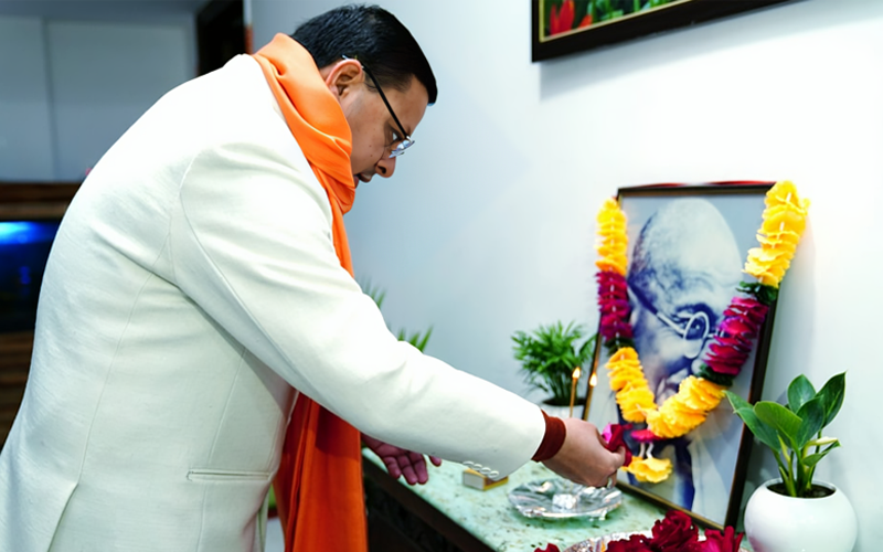 मुख्यमंत्री धामी ने राष्ट्रपिता महात्मा गांधी की पुण्यतिथि पर पुष्प अर्पित कर श्रद्धांजलि दी