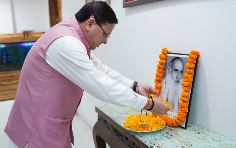 देहरादून – मुख्यमंत्री पुष्कर सिंह धामी ने आज मुख्यमंत्री आवास में स्वर्गीय इंद्रमणि बडोनी की जयंती पर उनके चित्र पर श्रद्धा सुमन अर्पित कर उन्हें श्रद्धांजलि दी।