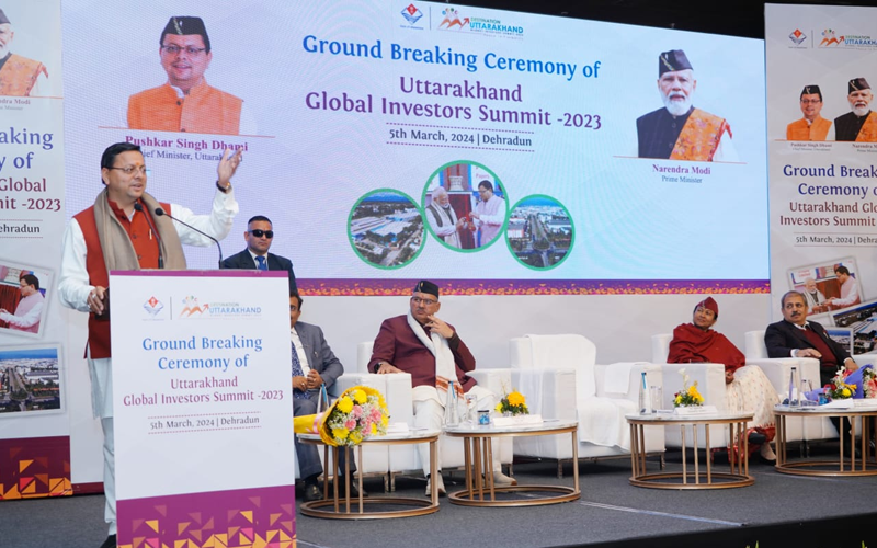 देहरादून – मुख्यमंत्री पुष्कर सिंह धामी ने आज राजपुर रोड स्थित होटल में उद्योग विभाग द्वारा आयोजित उत्तराखण्ड ग्लोबल इन्वेस्टर सम्मिट-2023 में हुए निवेश प्रस्तावों की ग्राउण्ड ब्रेकिंग सेरेमनी में प्रतिभाग किया। उन्होंने उद्यमियों से कहा कि आप हमारे ब्रांड एंबेसडर ही नहीं, बल्कि उससे भी बढ़कर की भूमिका आप लोगों ने निभाई है।