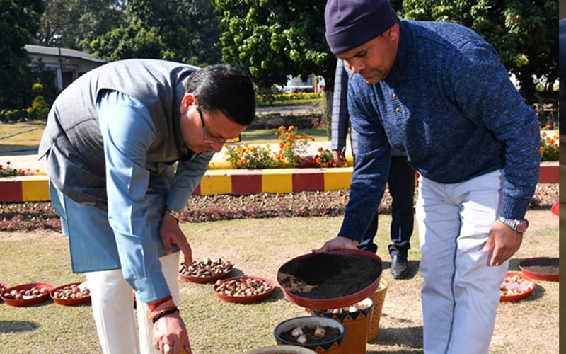 देहरादून – मुख्यमंत्री पुष्कर सिंह धामी ने आज मुख्यमंत्री आवास परिसर में ट्यूलिप की 13 प्रजातियों का रोपण किया। जिसमें बैंगनी एवं काले रंग के ट्यूलिप की प्रजाति भी शामिल है।