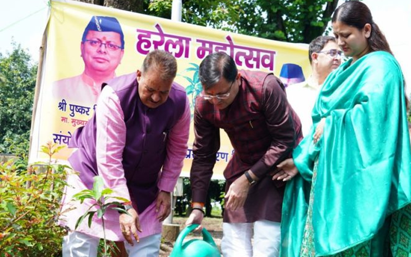 मुख्यमंत्री ने कहा जल संरक्षण एवं जल धाराओं के पुनर्जीवन की दिशा में राज्य में अनेक प्रयास किए जा रहे हैं। प्रधानमंत्री नरेन्द्र मोदी द्वारा देश में जल संरक्षण और संवर्द्धन के लिए सभी को आगे आने का अहवाहन किया गया है। राज्य में इस दिशा में तेजी से कार्य हो रहे हैं। राज्य में 1200 से अधिक अमृत सरोवर बनाए गए हैं। इस दिशा में आगे भी लगातार कार्य होंगे।हरेला पर्व के अवसर पर गीता पुष्कर धामी एवं कैबिनेट मंत्री गणेश जोशी ने भी वृक्षारोपण किया। इस अवसर पर मुख्यमंत्री आवास में विभिन्न प्रजातियों के 51 पौधे लगाए गए।इस अवसर पर अपर सचिव रणवीर सिंह चौहान, मुख्य वन संरक्षक वन पंचायत डॉ. पराग मधुकर धकाते, मुख्य उद्यान अधिकारी डॉ. मीनाक्षी जोशी, उद्यान प्रभारी श्री दीपक पुरोहित उपस्थित थे।