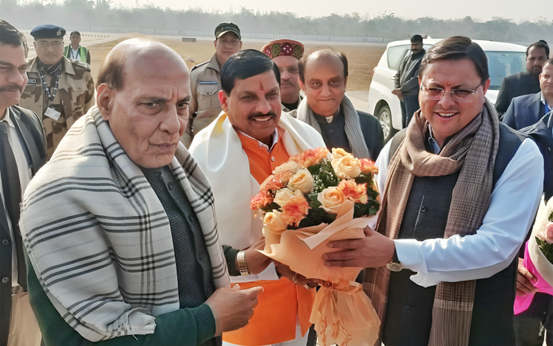 मुख्यमंत्री धामी ने उत्तराखण्ड आगमन पर केंद्रीय रक्षा मंत्री राजनाथ सिंह का हार्दिक स्वागत किया