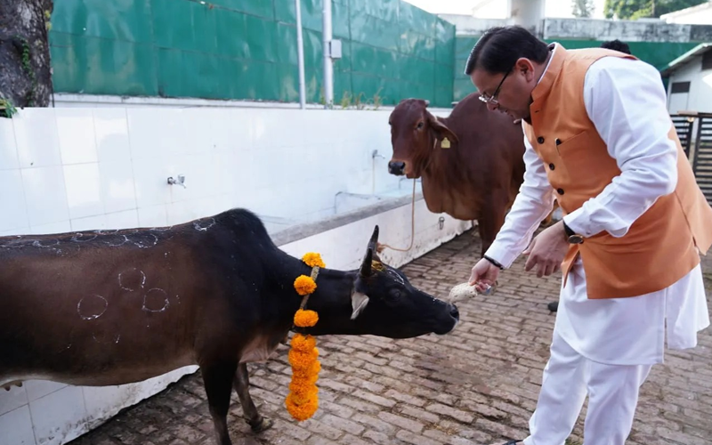 देहरादून।मुख्यमंत्री पुष्कर सिंह धामी ने गोवर्धन पूजा के अवसर पर मुख्यमंत्री आवास में गायों की पूजा की। पूजा के दौरान उन्होंने प्रदेशवासियों की सुख-समृद्धि व खुशहाली कि कामना की।कार्तिक मास के शुक्ल पक्ष की प्रतिपदा तिथि को गोवर्धन पूजन करने का विधान है।मुख्यमंत्री पुष्कर सिंह धामी ने कहा कि प्रकृति एवं पशुधन संरक्षण के प्रतीक, पावन पर्व गोवर्धन पूजा के अवसर पर गौ माता की सेवा की।भगवान श्री कृष्ण ने सम्पूर्ण विश्व को प्रकृति संरक्षण एवं पशुधन रक्षा का संदेश दिया जो हमारी सनातन संस्कृति का इन दोनों के प्रति कृतज्ञता को परिलक्षित करता है।प्रभु श्रीकृष्ण से प्रार्थना है कि आप सभी के जीवन में सुख, समृद्धि एवं आरोग्यता का संचार हो।