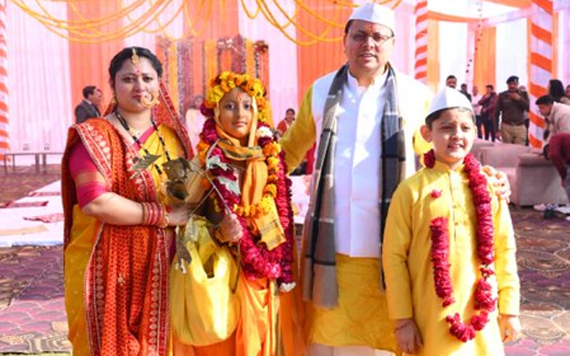 मुख्‍यमंत्री धामी के बड़े बेटे दिवाकर का यज्ञोपवीत संस्‍कार किया गया