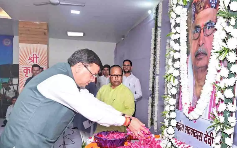 मुख्यमंत्री पुष्कर धामी ने मदन दास देवी को श्रद्धांजलि अर्पित की