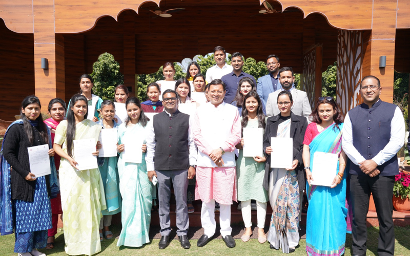 देहरादून – मुख्यमंत्री पुष्कर सिंह धामी ने आज मुख्यमंत्री आवास परिसर में 27 अभ्यर्थियों को नियुक्ति पत्र दिए। इसमें महिला सशक्तिकरण एवं बाल विकास विभाग के अंतर्गत चयनित 16 सुपरवाइजर तथा आबकारी विभाग के अंतर्गत चयनित 10 निरीक्षक व 01 कनिष्ठ सहायक शामिल हैं। मुख्यमंत्री ने सभी चयनित अभ्यर्थियों को बधाई व शुभकामनाएं देते हुए कहा कि आपके अथक परिश्रम के परिणामस्वरूप, आपका चयन इन पदों पर हुआ है, इसलिए अपने जीवन में हमेशा अनुशासित होकर कार्य करें।इस अवसर पर सचिव तथा निदेशक महिला सशक्तिकरण एवं बाल विकास विभाग, आबकारी विभाग के अधिकारी सहित संबंधित अधिकारीगण उपस्थित थे।