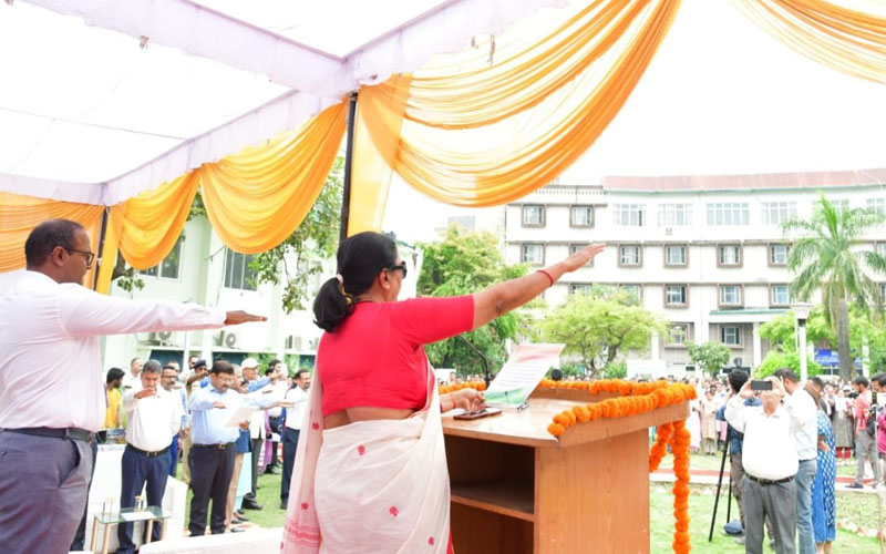 देहरादून – मुख्य सचिव राधा रतूड़ी ने आज सचिवालय में समस्त अधिकारियों व कर्मिकों को मताधिकार की शपथ दिलवाई। मुख्य सचिव ने सभी को अपने देश की लोकतांत्रिक परंपराओं की मर्यादाओं को बनाए रखने तथा स्वतंत्र, निष्पक्ष एवं शांतिपूर्ण निर्वाचन की गरिमा को अक्षुण्ण रखते हुए, निर्भीक होकर किसी भी प्रलोभन से प्रभावित हुए बिना निर्वाचन में अपने मताधिकार का प्रयोग करने की शपथ दिलवाई।इस अवसर पर मुख्य निर्वाचन अधिकारी डॉ. बी.वी.आर.सी.पुरुषोत्तम, अपर मुख्य निर्वाचन अधिकारी विजय कुमार जोगदंडे सहित सचिवालय के सभी अधिकारी तथा कर्मचारी उपस्थित थे।