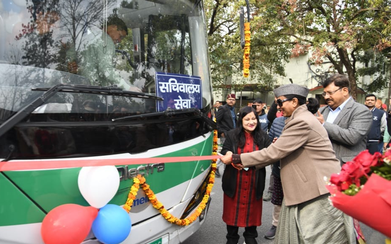 मुख्य सचिव राधा रतूड़ी ने कार्मिकों के लिए इलेक्ट्रिक बस सेवा का शुभारंभ किया