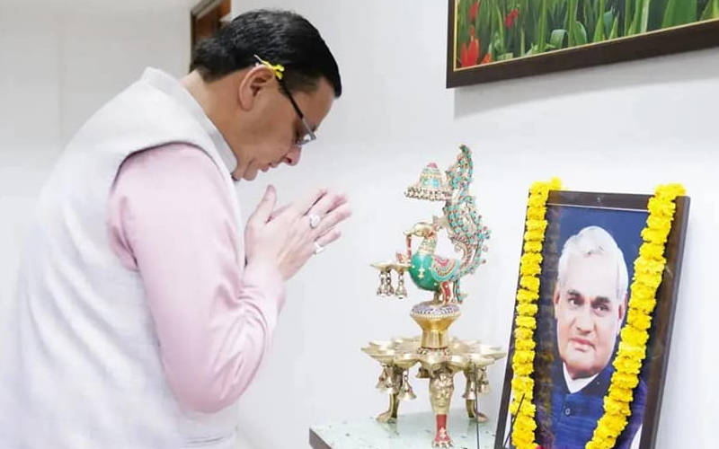 सीएम धामी ने पूर्व प्रधानमंत्री भारत रत्न स्व. अटल बिहारी वाजपेयी की जयंती पर दी श्रद्धांजलि