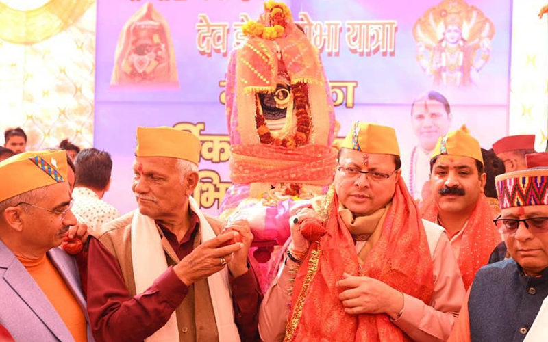 देहरादून – मुख्यमंत्री पुष्कर सिंह धामी ने आज देहरादून में मां धारी देवी एवं भगवान नागराजा देव डोली शोभायात्रा 2023 के शुभारंभ कार्यक्रम में प्रतिभाग किया। उन्होंने मां धारी देवी एवं भगवान नागराजा देव डोली की पूजा-अर्चना कर प्रदेश में सुख-शांति की कामना की। इस अवसर पर मेयर सुनील उनियाल गामा, विधायक खजान दास तथा बृजभूषण गैरोला सहित अन्य सम्मानित जन उपस्थित रहे।