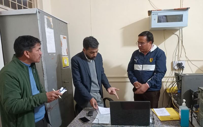 1 of 6-+लेखाकार पटल के निरीक्षण पर जिलाधिकारी ने सम्बधित जे0ई0 व पटल प्रभारी को निर्देश दिये कि विभिन्न योजनाओं के तहत मेटिरियल की ढुलाई के लिए दी जा रही अग्रिम धनराशि नियमानुसार में नियमों का सख्ती से पालन करना सुनिश्चित करें। साथ ही ग्राम स्तर के विभिन्न पंहुच मार्गो के निर्माण में नियमों का सख्ती से अनुपालन करने की हिदायत दी है। मनरेगा पटल के निरीक्षण के दौरान मेंनडेज में विकासखण्ड पौड़ी जनपद में तीसरे स्थान पर पाया गया जिसपर जिलाधिकारी ने बीडीओ को मनरेगा कार्यो में प्रगति लाने के निर्देश दिये हैं। एडीओ पंचायत पटल का निरीक्षण करते हुए जिलाधिकारी ने जिला पूर्ति अधिकारी को अन्तयोदय कार्ड की डाटा एन्ट्री शत प्रतिशत शुद्धता के साथ करना सुनिश्चित करें ताकि जरुरतमंद को योजना का लाभ मिल सके। मौके पर बीडीओ शिव सिंह भण्डारी, एबीडीओ टेकाराम, एडीओ पंचायत मदन लाल राणा, उप कार्यक्रम अधिकारी दीपक नेगी, सहायक समाज कल्याण अधिकारी अनील सेमवाल आदि उपस्थित थे।