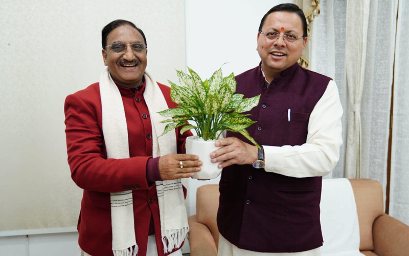 मुख्यमंत्री धामी से पूर्व मुख्यमंत्री डॉ. रमेश पोखरियाल निशंक ने भेंट की