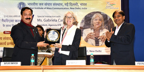 इस अवसर पर गैबरिएला कान्यास ने 'ईएफई' की और से भारतीय जन संचार संस्थान के महानिदेशक प्रो. संजय द्विवेदी काे सम्मानित किया। प्रो. द्विवेदी को ये सम्मान पत्रकारिता एवं मीडिया शिक्षा के क्षेत्र में दिए गए उनके उल्लेखनीय योगदान के लिए दिया गया। 'ईएफई' विश्व की चौथीं सबसे बड़ी न्यूज एजेंसी है और दुनिया के 110 देशों में उनके संवाददाता काम कर रहे हैं।