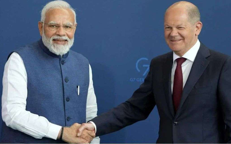 नई दिल्ली – जर्मनी के चांसलर ओलाफ शोल्ज शनिवार को दो दिवसीय भारत यात्रा पर पहुंचे। यहां राष्ट्रपति भवन में प्रधानमंत्री नरेंद्र मोदी ने उनका स्वागत किया। दोनों नेता आज समग्र वार्ता करेंगे, जिसमें यूक्रेन संघर्ष, हिंद-प्रशांत क्षेत्र की स्थिति, स्वच्छ ऊर्जा, कारोबार और नई प्रौद्योगिकी के साथ-साथ द्विपक्षीय संबंधों में तेजी लाने से जुड़े कदमों पर चर्चा होगी।दोपहर में शोल्ज राजघाट जाकर महात्मा गांधी की समाधि पर पुष्पांजलि अर्पित करेंगे। चांसलर शोल्ज का राष्ट्रपति द्रौपदी मुर्मू से भेंट करने का भी कार्यक्रम है। रविवार की सुबह चांसलर शोल्ज बेंगलूरू के लिए रवाना होंगे।