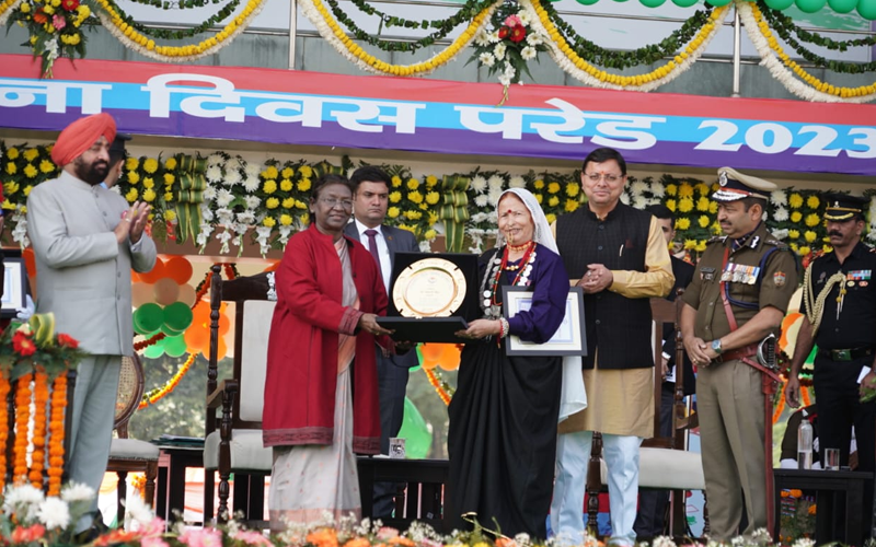देहरादून : उत्तराखण्ड के राज्य स्थापना दिवस के अवसर पर पुलिस लाईन, देहरादून में आयोजित कार्यक्रम के अवसर पर राष्ट्रपति द्रौपदी मुर्मु ने समस्त उत्तराखंड वासियों को बधाई एवं शुभकामनाए दी। अपने सम्बोधन में राष्ट्रपति द्रौपदी मुर्मु ने कहा कि राज्य गठन के बाद नई पहचान के साथ उत्तराखंड के परिश्रमी लोगों ने राज्य के लिए विकास और प्रगति के नित-नूतन शिखरों पर अपने कदम जमाए हैं। भगवान शिव और भगवान विष्णु के आशीर्वाद-स्वरूप देवालयों से पवित्र उत्तराखंड को ‘देव-भूमि’ कहने की परंपरा वंदनीय है।  पर्वतराज हिमालय की पुत्री देवी पार्वती एवं शक्ति के अन्य पूजनीय स्वरूपों से ऊर्जा प्राप्त करने वाली तथा गंगा-यमुना जैसी नदी-माताओं के स्नेह से सिंचित यह पावन धरती ‘देवी-भूमि’ भी है। यह क्षेत्र ‘जय महा-काली’ और ‘जय बदरी-विशाल’ के पवित्र उद्घोष से गुंजायमान रहता है। हेमकुन्ट साहिब और नानक-मत्ता से निकले गुरबानी के स्वर यहां के वातावरण को पावन बनाते हैं।  मा. राष्ट्रपति ने कहा कि पिछले वर्ष दिसंबर के महीने में मुझे उत्तराखंड की यात्रा करने का सु-अवसर मिला था। उत्तराखंड में आने का प्रत्येक अवसर तीर्थ-यात्रा का पुण्य प्राप्त करने की तरह होता है। उत्तराखंड की इस देव-भूमि से मैं सभी देशवासियों के लिए दीपावली की अग्रिम शुभकामनाएं व्यक्त करती हूं और महा-लक्ष्मी से यह प्रार्थना करती हूं कि उत्तराखंड सहित समस्त भारत को वे धन-धान्य तथा सुख और आरोग्य से परिपूर्ण करें।