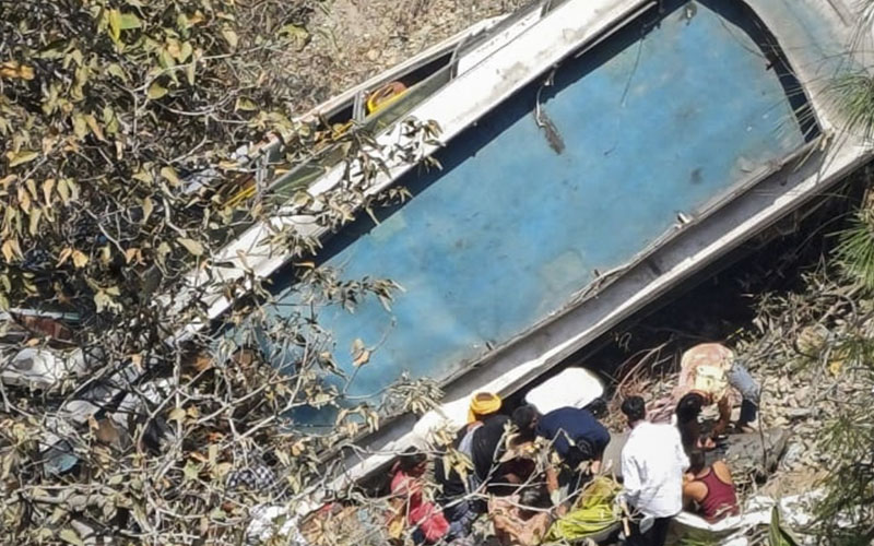 जम्मू – जम्मू-पूंछ राष्ट्रीय राजमार्ग (144ए) पर अखनूर के टूंगी मोड़ क्षेत्र में बड़ा सड़क हादसा हो गया। यहां एक यात्रियों से भरी बस गहरी खाई में जा गिरी। इस हादसे में अब तक 15 लोगों के मारे जाने की खबर है। करीब 40 यात्री घायल बताए जा रहे हैं। इनमें 20 को जीएमसी जम्मू रेफर किया गया है।पुलिस व स्थानीय लोगों द्वारा बचाव अभियान चलाया जा रहा है। खाई से निकाल कर घायलों को अखनूर उपजिला अस्पताल में पहुंचाया गया। जहां से गंभीर रूप से घायल यात्रियों को जम्मू मेडिकल कॉलेज रेफर किया गया।