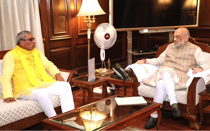नई दिल्ली – सुहेलदेव भारतीय समाज पार्टी के राष्ट्रीय अध्यक्ष ओम प्रकाश राजभर ने बृहस्पतिवार को दिल्ली में गृह मंत्री अमित शाह से मुलाकात की।इस दौरान उन्होंने उत्तर प्रदेश और बिहार की वर्तमान राजनीतिक परिस्थिति, लोकसभा चुनाव की तैयारियों सहित भर व राजभर जाति को अनुसूचित जनजाति में शामिल किये जाने के लिए प्रस्ताव पर यथा शीघ्र उत्तर प्रदेश सरकार से रिपोर्ट मंगाने पर चर्चा की।उन्होंने बंजारा जाति की सामाजिक समस्याओं व गोंड और खरवार जाति के जातिप्रमाण पत्र प्रदेश के समस्त जनपदों में सरकार द्वारा जाति प्रमाण पत्र जारी कराने पर चर्चा कीl