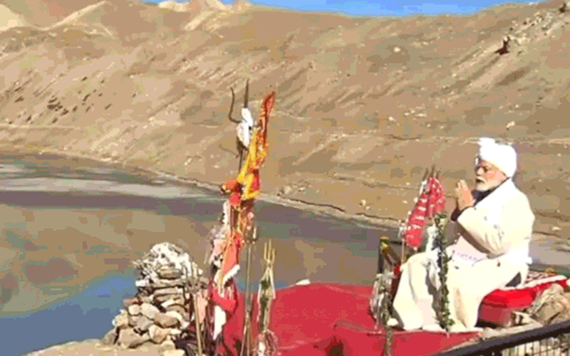 पिथौरागढ़ – प्रधानमंत्री नरेंद्र मोदी आज उत्तराखंड दौरे पर हैं। प्रधानमंत्री नरेंद्र मोदी ने पिथौरागढ़ के पार्वती कुंड में पूजा-अर्चना की। पुजारी ने प्रधानमंत्री को टीका लगाया। इसके बाद उन्होंने मंदिर में शंख ध्वनि कर पूजा अर्चना की। डमरू बजाकर भगवान शिव की आराधना की। इसके बाद व्यू प्वाइंट से आदि कैलाश की भव्यता के दर्शन किए। उन्होंने यहां पर बनाए गए ध्यान स्थल से ध्यान भी लगाया। इसके बाद गुंजी के लिए रवाना हुए। प्रधानमंत्री नरेंद्र मोदी बृहस्पतिवार की सुबह हेलीकॉप्टर से आदि कैलाश पहुंचे। प्रधानमंत्री का बेस कैंप में सेना के अधिकारियों ने स्वागत किया। बेस कैंप से प्रधानमंत्री मोदी सड़क मार्ग से पार्वती सरोवर स्थित शिव मंदिर पहुंचे। यहां पर रंगा समाज के लोगाें ने पीएम को पारंपरिक परिधान रंगा व्यंथला पहनाया।