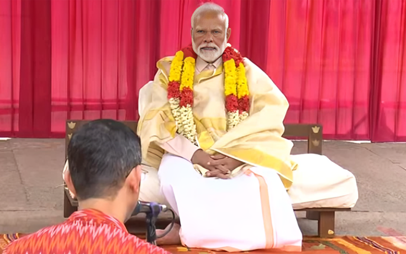 नई दिल्ली – प्रधानमंत्री नरेंद्र मोदी 22 जनवरी को अयोध्या में भगवान श्रीराम का अभिषेक करने वाले हैं। इससे पहले वह देशभर के मंदिरों में जा रहे हैं और पूजा कर रहे हैं। इसी क्रम में पीएम ने शनिवार को तमिलनाडु के तिरुचिरापल्ली स्थित रंगनाथस्वामी मंदिर में पूजा की।पीएम मंदिर पहुंचे तो गजराज (हाथी) ने उन्हें आशीर्वाद दिया। हाथी ने पीएम के सामने माउथ ऑर्गन बजाया। इसके बाद पीएम मंदिर में गए पूजा-अर्चना की। पीएम नरेंद्र मोदी रंगनाथस्वामी मंदिर में पूजा करने वाले पहले प्रधानमंत्री हैं।रंगनाथस्वामी मंदिर में पूजा के बाद पीएम मोदी यहां मौजूद विद्वानों से कंबा रामायण के दोहे भी सुने। तमिलनाडु के राज्यपाल आरएन रवि के साथ मिलकर उन्होंने राजभवन के परिसर में रुद्राक्ष के पौधे भी लगाएं।