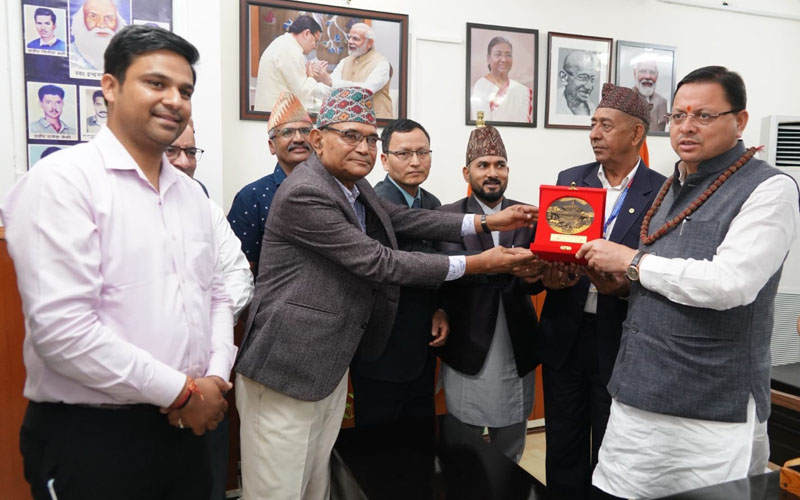 देहरादून – मुख्यमंत्री पुष्कर सिंह धामी से सचिवालय में आज नेपाल एसोसिएशन ऑफ टूर एंड ट्रेवल एजेंट के प्रतिनिधियों ने अध्यक्ष पद्म विक्रम सिंह के नेतृत्व में भेंट कर नेपाल में संचालित पर्यटन गतिविधियों की जानकारी दी। मुख्यमंत्री ने कहा कि नेपाल से हमारे रिश्ते जुड़े हैं। उत्तराखण्ड एवं नेपाल के पर्यटन व्यवसायी आपस में मिलकर पर्यटन व्यवसाय को नये आयाम देने में मददगार हो सकते हैं। उन्होंने पर्यटन को आर्थिकी का आधार बताते हुए इस दिशा में नेपाल एसोसिएशन ऑफ टूर एंड ट्रेवल के प्रयासों की भी सराहना की।इस अवसर पर दून ट्रैवल ऑनर्स एसोसिएशन के अध्यक्ष योगेश अग्रवाल, सचिव प्रवीण चावला आदि भी उपस्थित थे। जबकि नेपाल टूरिज्म बोर्ड के सदस्यों में माया प्रकाश भट्टा, विक्रम शाह आदि उपस्थित रहे।