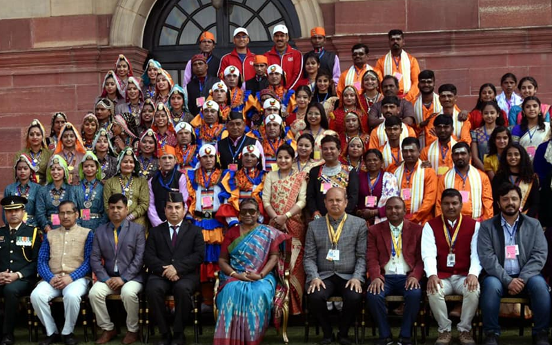 देहरादून – राष्ट्रपति श्रीमती द्रौपदी मुर्मू से आज राष्ट्रपति भवन में उत्तराखण्ड सूचना एवं लोक सम्पर्क विभाग के संयुक्त निदेशक एवं झांकी के टीम लीडर के.एस.चौहान के नेतृत्व में 26 जनवरी को कर्तव्य पथ पर प्रदर्शन हेतु चयनित उत्तराखण्ड की झांकी के कलाकारों ने भेंट की।