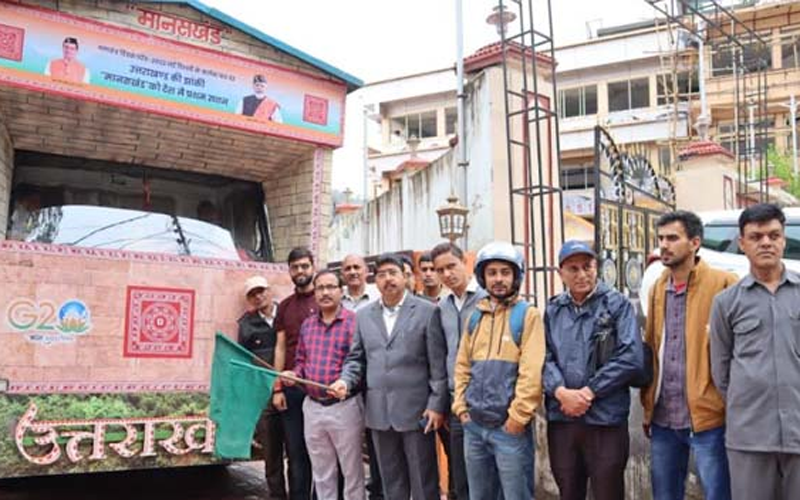 रुद्रप्रयाग: गणतंत्र दिवस परेड-2023 में शामिल उत्तराखंड की मानसखंड की झांकी जनपद रुद्रप्रयाग के मुख्यालय पहुंची। झांकी को रुद्रप्रयाग मुख्यालय से मुख्य विकास अधिकारी नरेश कुमार ने हरी झंडी दिखाकर अगस्त्यमुनि के लिए रवाना किया। इसके बाद झांकी को सभी विकास खंडों में दर्शन के लिए प्रदर्शित किया जाएगा।रुद्रप्रयाग मुख्यालय में पहुंची उत्तराखंड की मानस झांकी को देखने के लिए स्थानीय लोगों में काफी उत्साह देखने को मिला। राज्य सरकार की ओर से उत्तराखंड की झांकी को प्रदेश स्तर पर अधिक-से-अधिक स्थानों में दर्शन के लिए प्रदर्शित किया जा रहा है। गणतंत्र दिवस परेड में पूरे देशभर में उत्तराखंड की झांकी ने प्रथम स्थान प्राप्त किया था।मानसखंड की झांकी बुधवार को जनपद मुख्यालय में पहुंची।
