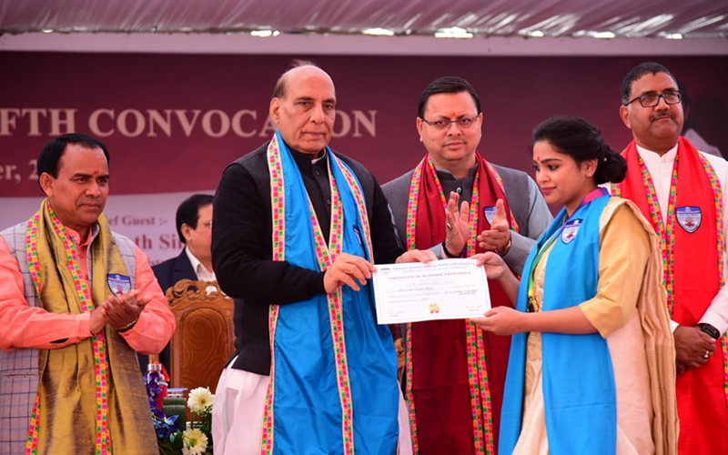 केन्द्रीय रक्षा मंत्री राजनाथ सिंह तथा मुख्यमंत्री धामी ने पंचम दीक्षांत समारोह में प्रतिभाग किया