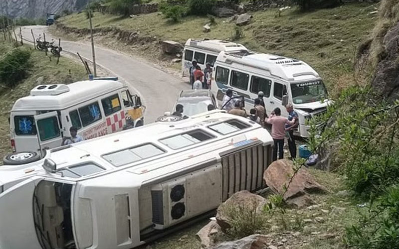 गंगोत्री – अहमदाबाद गुजरात से चारधाम यात्रा पर आए श्रद्धालुओं का वाहन गंगोत्री सोनगाड़ के पास हादसे का शिकार हो गया। वाहन दुर्घटनाग्रस्त होते ही चीख-पुकार मच गई। हादसे की वजह ब्रेक फेल होना बताया जा रहा है। गंगोत्री धाम की ओर जाते हुए सोनगाड़ के पास ब्रेक फेल होने से वाहन दुर्घटनाग्रस्त हो गया। यातायात निरीक्षक राजेन्द्र नाथ के नेतृत्व में पुलिस के जवानों ने घायलों को 108 की मदद से प्राथमिक स्वास्थ्य केन्द्र भटवाडी पहुंचाया गया। वाहन में चालक सहित 18 लोग सवार थे। सभी सुरक्षित हैं। आठ लोगों को हल्की चोटें आई हैं।